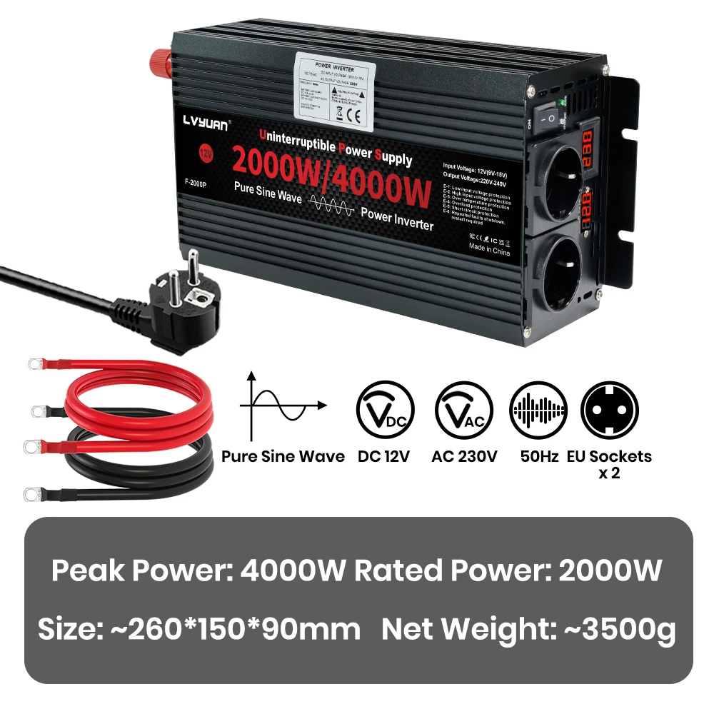 4KW UPS Inverter Charger Pure Sine Wave Solar Inverter DC12/24V To AC 220V/230V110V/120V,For RV,Truck, Solar, Outdoor – AliExpress – Color Name : 12V EU 230V 50HZ – Ships From : United States
