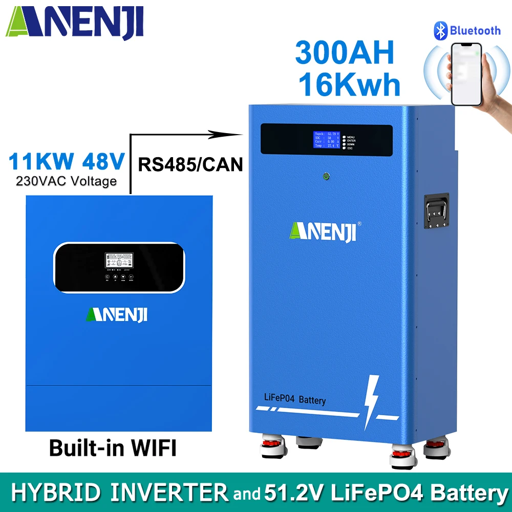 ANENJI51.2V300Ah16KwhLiFePO4BatteryPack11KWhybridinverter6000Cycles200AhSolarEnergyStorageSTOCKAliExpress
