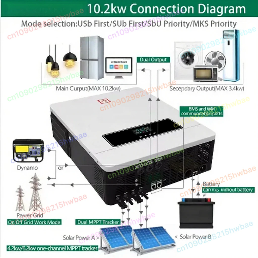DualOutputOn/Off-GridSolarInverter4.2kw6.2kw10.2kwHybridInverterwithDualInputSolarChargeControllerAliExpress
