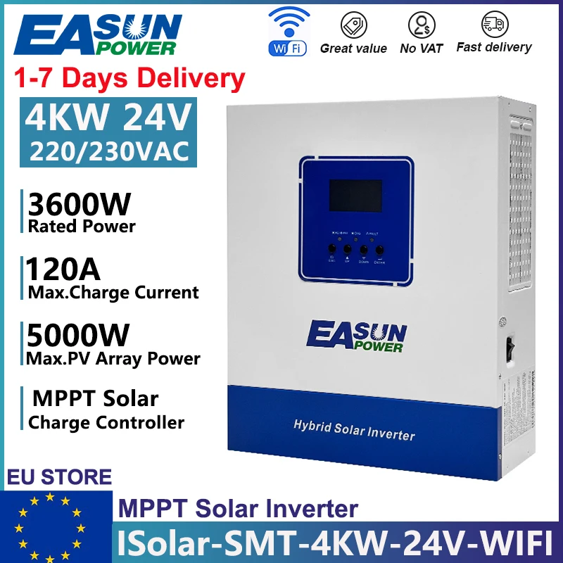 EASUN POWER 6.2KW 4KW 3.2KW 2KW Hybrid Solar Inverter 48V 24V 12V 220VAC Built-In 120A MPPT Solar Controller PV Input 500VAC Pure Sine Wave Off Grid Inverter With WIFI BMS EU Stock No Tax – AliExpress 13 – Color : SMT 4KW 24V WIFI – Ships From : PL