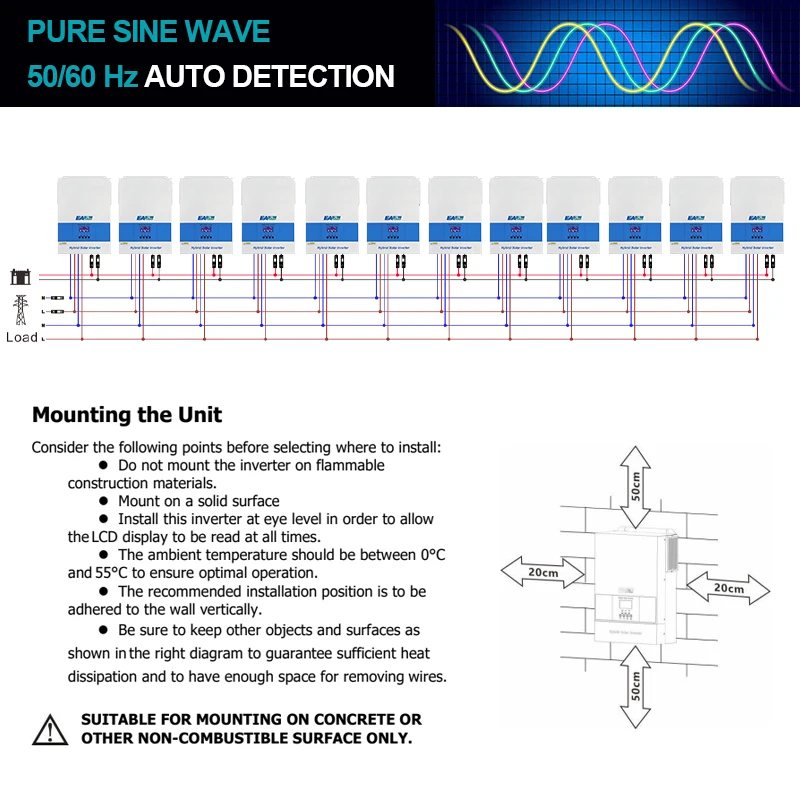 EASUNPOWERSoalrInverter12.4KWGrid120A500VDC220VAC48VDC13KWMPPTPureSineWavehybridWithWiFIParallelAliExpress