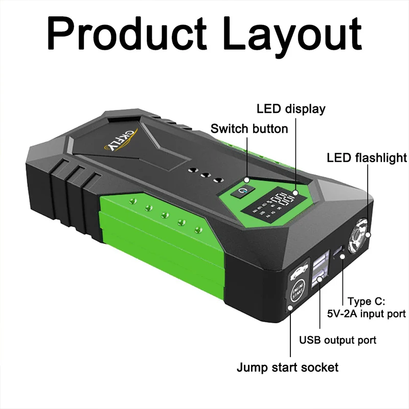 GKFLY 59.2Wh Start Power 3000A Jump Starter Car Booster External Battery 12V Starting Device for Petrol Diesel Powerbank – AliExpress 34 – Ships From : spain