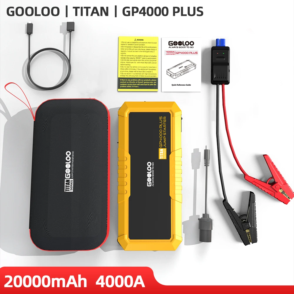 GOOLOO 4000A Start Power Bank 20000mAh Jump Starter Car Booster External Battery 12V Starting Device for Petrol Diesel Powerbank – AliExpress 34 – Color : GP4000 PLUS – Ships From : Poland
