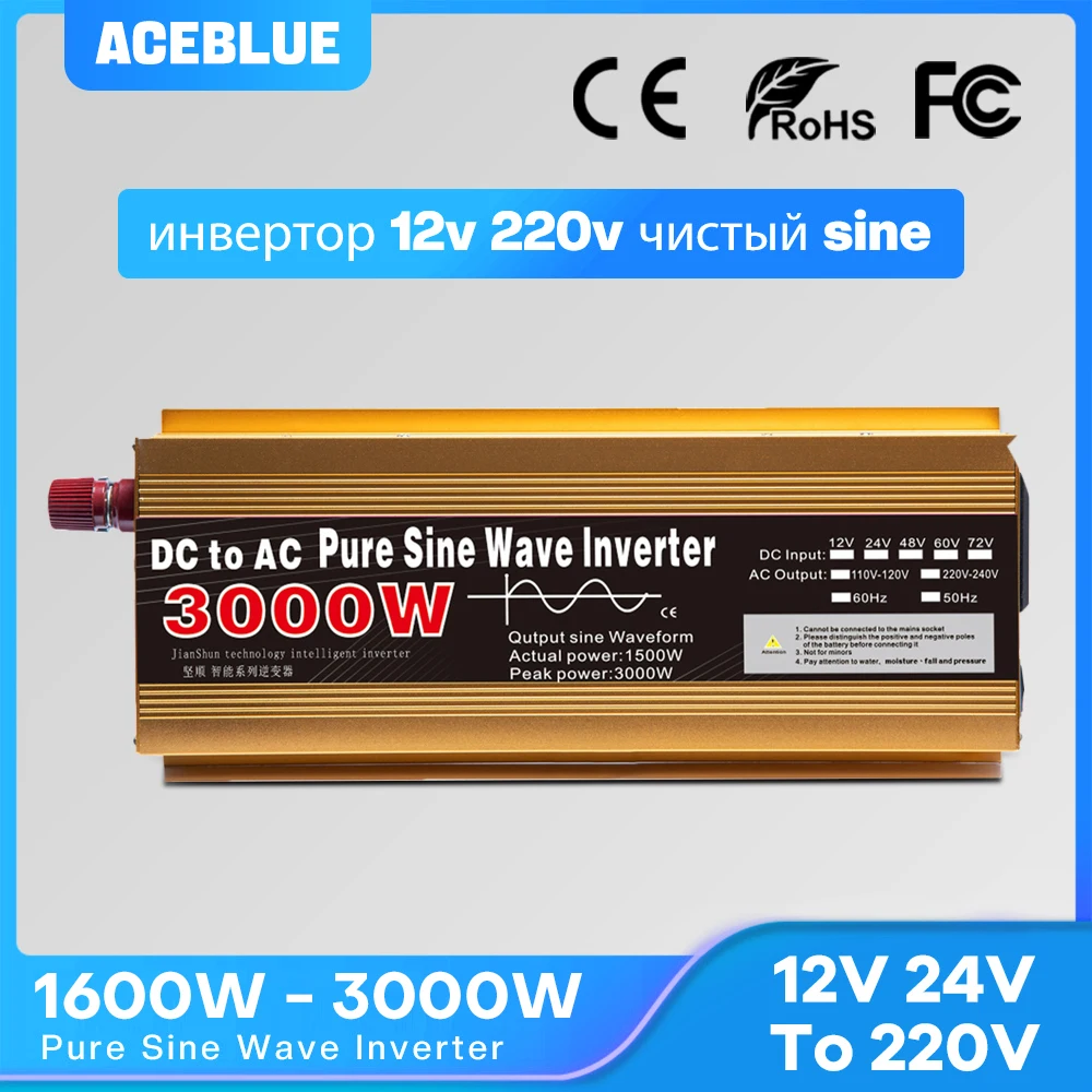 Inverter220vPureSineWave1600W-3000WTransformerConvertMulti-functionSocketConverterinverterAliExpress