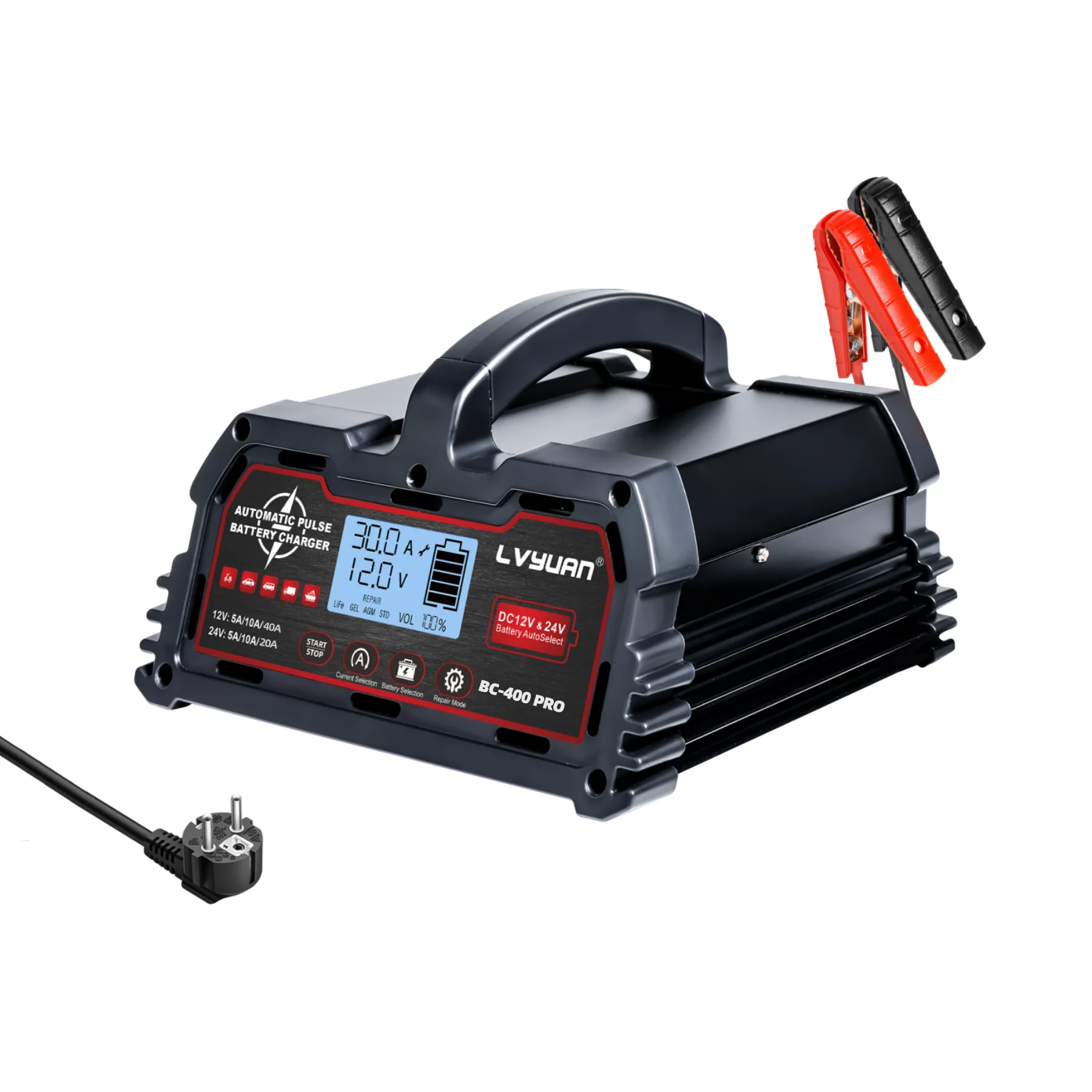 LVYUAN 20A 25A 30A 40A Battery Charger for 12V 24V Lead-Acid Battery/LiFePO4/ AGM/STD/ Gel/EFB with Pulse Repair Function – AliExpress 34 – Color : 40Amp EU plug – Ships From : Poland