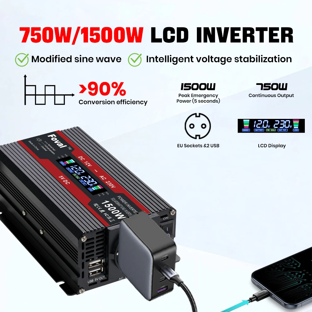 PowerInverter1500W/2000W/2600WDisplay220VSolarTransformerConvertSocketModifiedSineWaveAliExpress