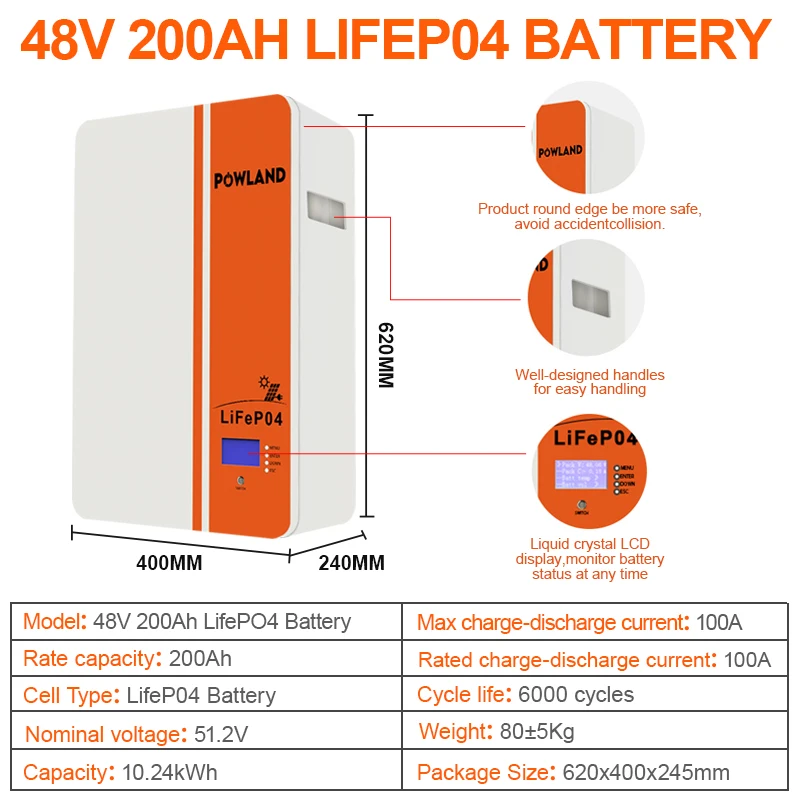 POWLAND51.2VLifepo4Battery300AhLargeCapacity15360WhHighEnergyIntelligentSupportParallelUnitsAliExpress