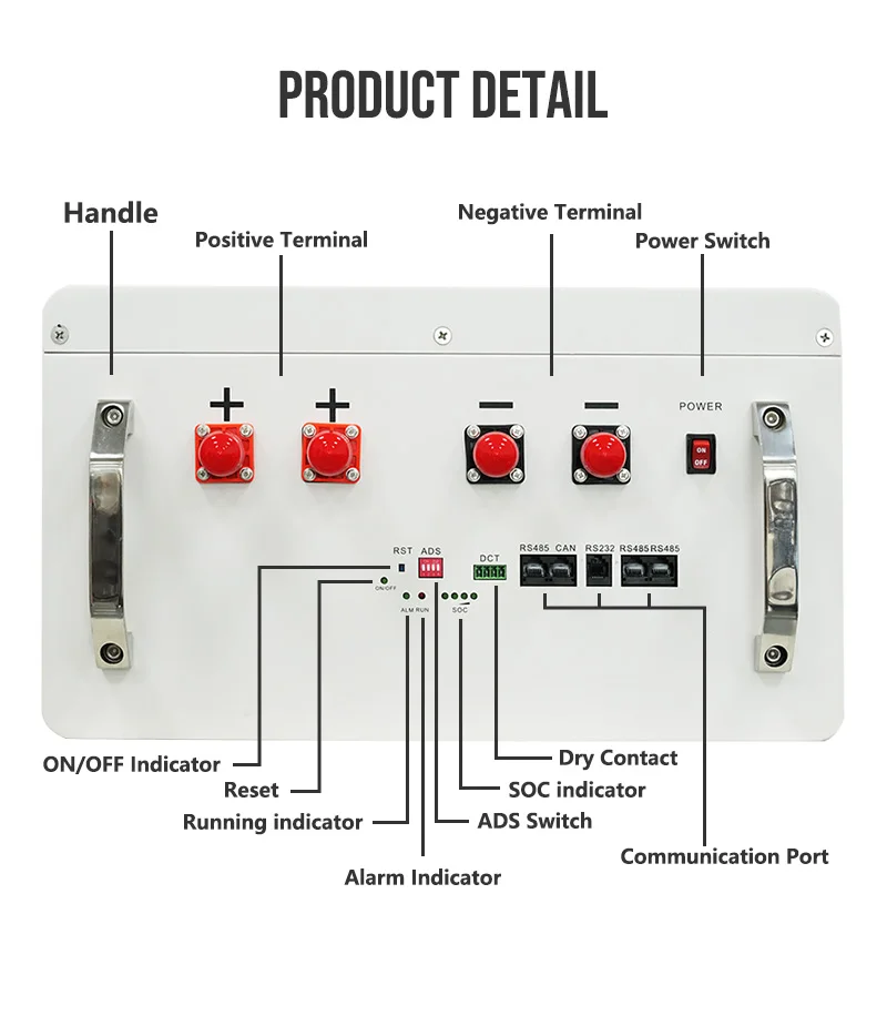Nominal Voltage: 48V or 51.2VnNominal Capacity: 200AhnEnergy Power: 9.6KWH or 10.2KWHnCommunication Protocol: RS485, RS232, CANnMaximum Charging Curre
